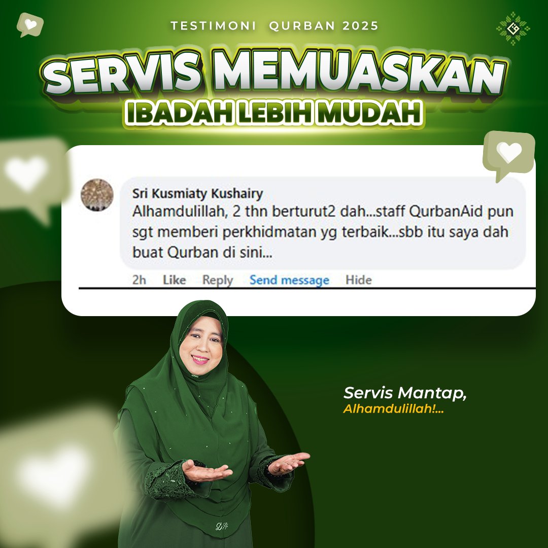 Program Korban 2025 dianjurkan oleh Qurbanaid International bagi memudahkan pendaftaran dan penyertaan ibadah Qurban. Semua maklumat yang dipaparkan dalam iklan dan promosi kami adalah tepat pada waktu penerbitan. Walau bagaimanapun, kami tidak menjamin bahawa maklumat ini bebas daripada perubahan atau kesilapan, termasuk tetapi tidak terhad kepada harga pakej, lokasi penyembelihan, pengagihan daging, serta sebarang tawaran promosi. Sebarang perubahan akan dimaklumkan kepada pelanggan dengan kadar segera.